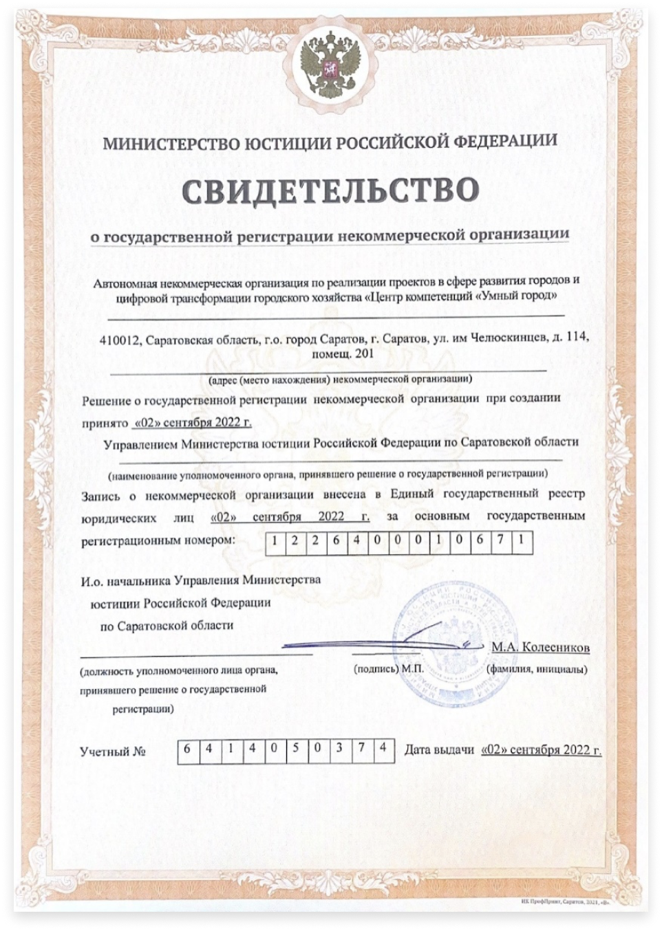 Распоряжение Правительства Саратовской области «О создании автономной некоммерческой организации по реализации проектов в сфере развития городов и цифровой трансформации городского хозяйства «Центр компетенций «Умный город» от 29 августа 2002 года № 336-Пр